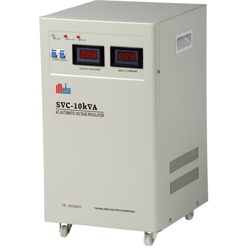 Meba 10KVA Digital Display AC Voltage Regulators SVC-E 10KVA For office equipment, test equipment, lighting systems, safety alarm systems, communication systems, medical equipment, duplicators, stereo sound equipment, industrial automatic equipment, color film developing equipment, digital control machine tools, checkout equipment, TV sets, office appliances.Meba 10KVA Digital Display AC Voltage Regulators SVC-E 10KVA