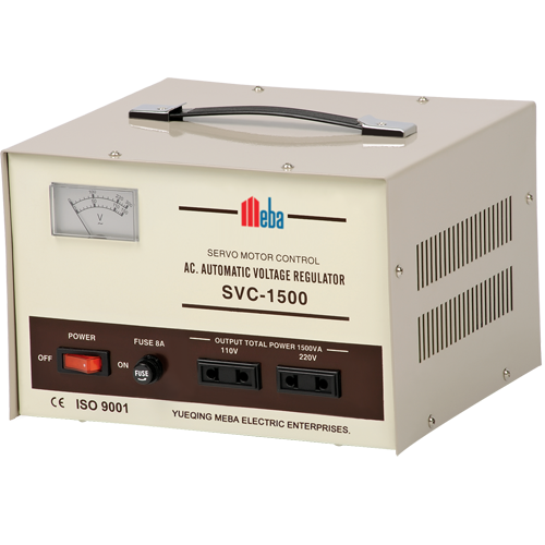 Meba Automatic Control Circuit Regulator SVC-1500VA For office equipment, test equipment, lighting systems, safety alarm systems, communication systems, medical equipment, duplicators, stereo sound equipment, industrial automatic equipment, color film developing equipment, digital control machine tools, checkout equipment, TV sets, office appliances.Meba Automatic Control Circuit Regulator SVC-1500VA