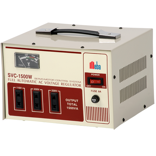 Meba Entirely Automatic Voltage Stabilizer SVCE-1500W For office equipment, testing equipment, medical equipment, industrial automation equipment, household appliance, lighting system, communication system, etc. Provide kinds of electrical appliances with abundant electric power meeting different requirements.