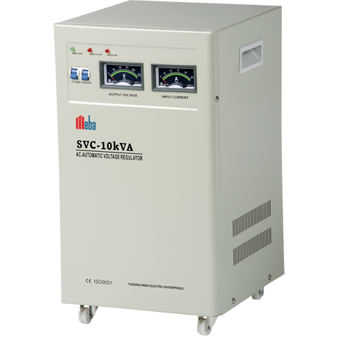 Meba Single Phase Regulator AVR SVC-10KVA When the power network voltage fluctuates or the load varies, automatic sampling control circuit will send signal to drive the servo motor which can adjust the position of carbon brush of auto voltage regulator, then, the output voltage will be adjusted to rated value and get a steady state.Meba Single Phase Regulator AVR SVC-10KVA