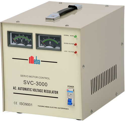 Meba Stabilizer SVC-3000VA For office equipment, test equipment, lighting systems, safety alarm systems, communication systems, medical equipment, duplicators, stereo sound equipment, industrial automatic equipment, color film developing equipment, digital control machine tools, checkout equipment, TV sets, office appliances.Meba Stabilizer SVC-3000VA